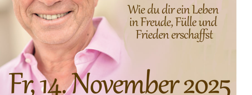 nach einer längeren Sommerpause freue ich mich wieder auf die kommenden Vorträge in vielen Städten zu den zentralen Themen des Lebens, die uns am meisten bewegen. In ihnen zeige ich auf, wie wir durch unbewusstes Denken, Sprechen und Handeln eine oft unbefriedigende und unfriedliche Lebenswirklichkeit samt Ängsten, Mangel, Krisen und oft Krankheiten erschaffen und wie wir jetzt unseren Weg in eine völlig neue Lebensqualität finden können.