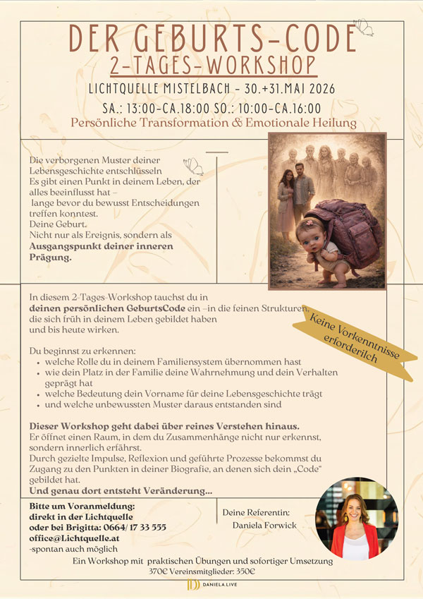 dank der großen Nachfrage gibt es ein 2-Tages-WORKSHOP in Mistelbach:
