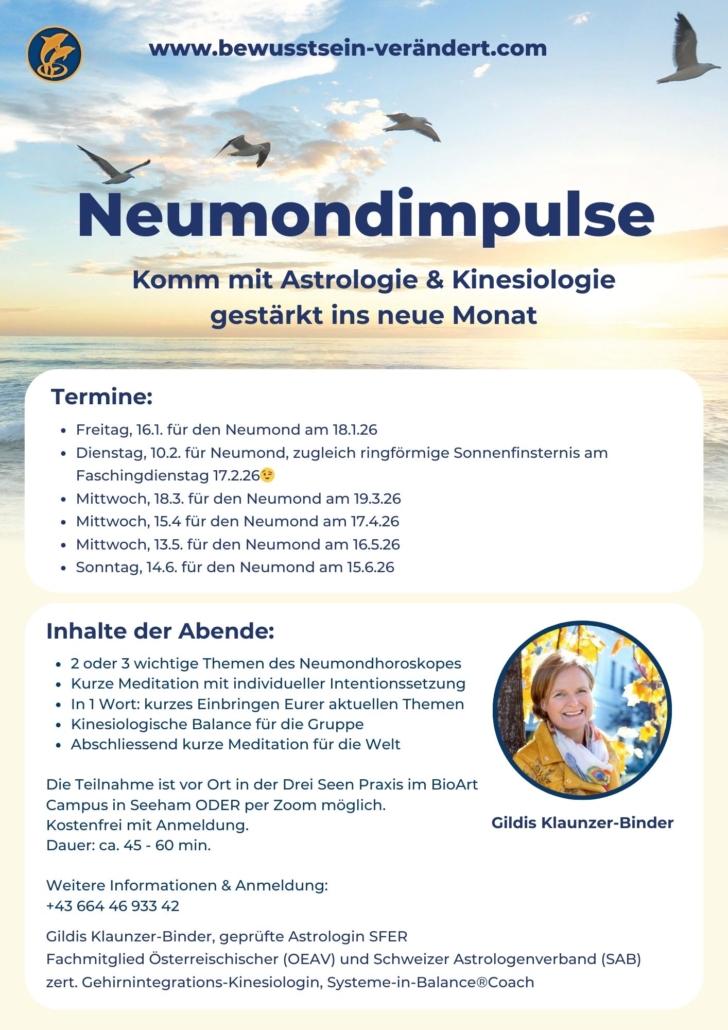 JETZT kommen einige Neuigkeiten zu monatlichen NEUMONDIMPULSEN mit Gildis Klaunzer – Binder.