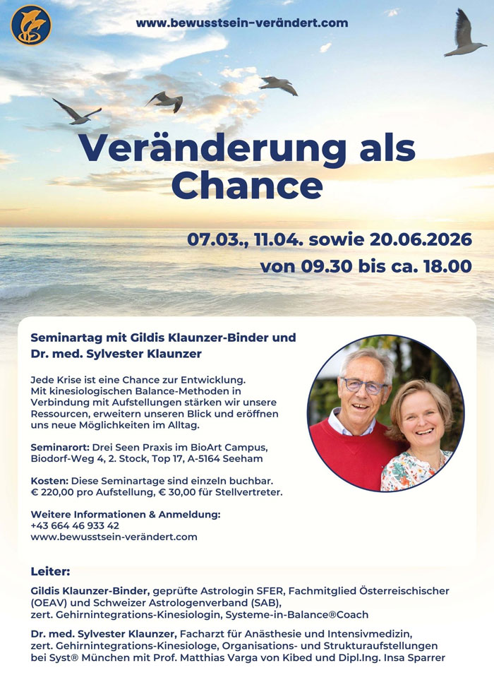 Nun ist mein persönliches Glück, Sylvester Klaunzer – Ehemann von Gildis, schon begegnet zu sein. Nein noch besser, ich hatte ein langes köstliches Frühstück mit Gildis und Sylvester, und anschließend einen laaangen Spaziergang mit den beiden zu genießen. Diese Zeit beinhaltete viele sehr interessante Gespräche, diese wirkten noch lange in mir nach. Umso mehr freue ich mich, dass diese beiden wieder gemeinsam Kinesiologisch-Systemische Aufstellungsabende anbieten. Wenn möglich, werde ich solch einen Abend gerne auch einmal in Mistelbach organisieren, denn Mattsee, so wunderschön es auch ist, ist ja doch ein Stückerl von uns entfernt. Aus diesem Grund, folgend mehr dazu: